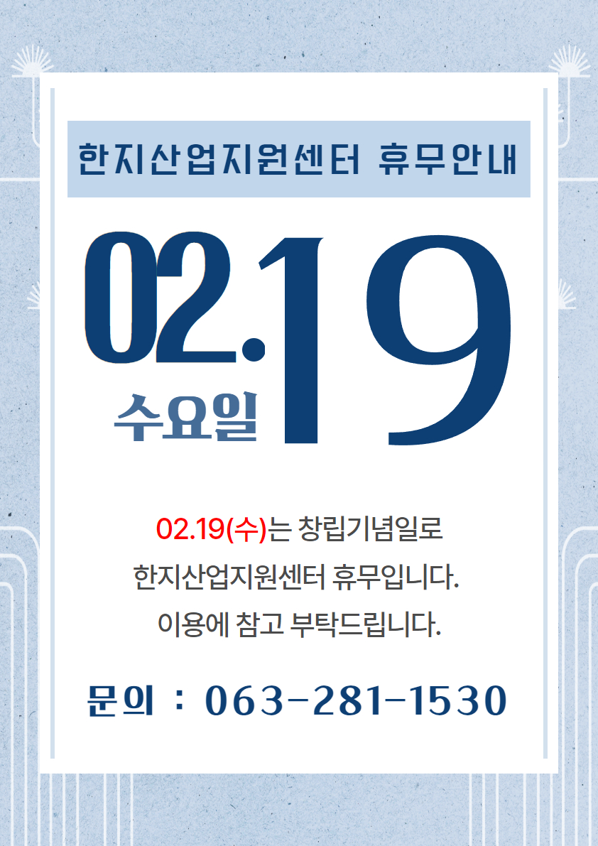 2월 한지체험 휴무안내