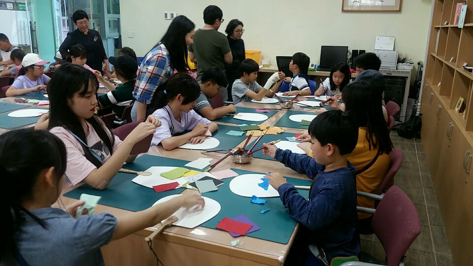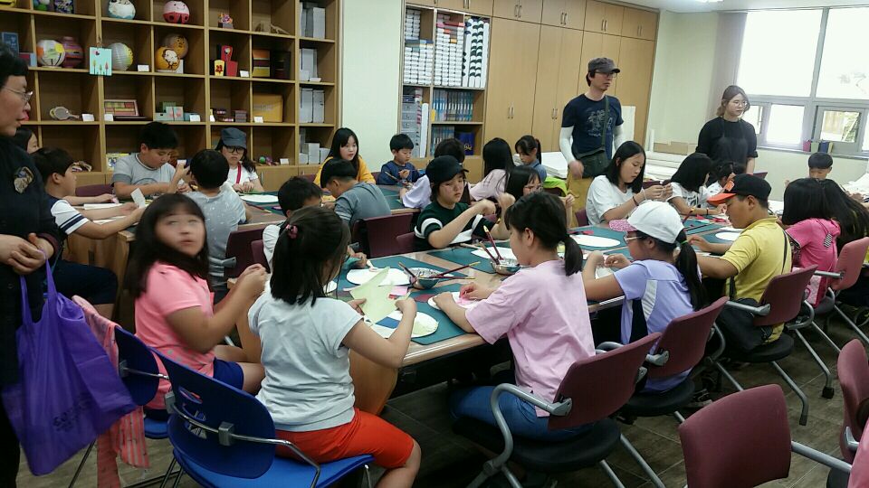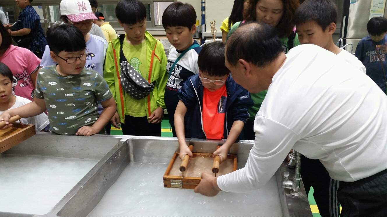 양산 원동초 - 부채만들기, 패키지A (한지뜨기+꼬마접시만들기) (2017.06.15) | 한지공예체험